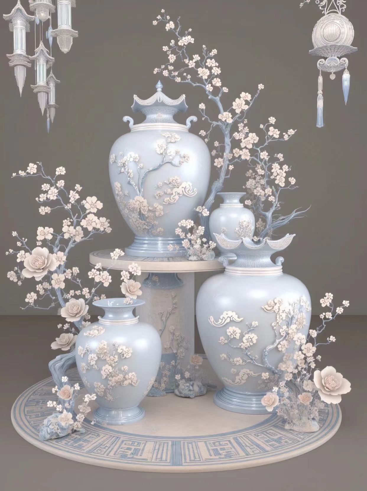 “Serenity of Plum Blossoms” Handcrafted Ceramic Vase Set